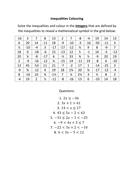 Solving Inequalities Coloring Worksheet. The problems start off easy and slowly work their way to more difficult problems. This coloring activity will allow your students to practice one-variable, one-step inequalities in a fun way.